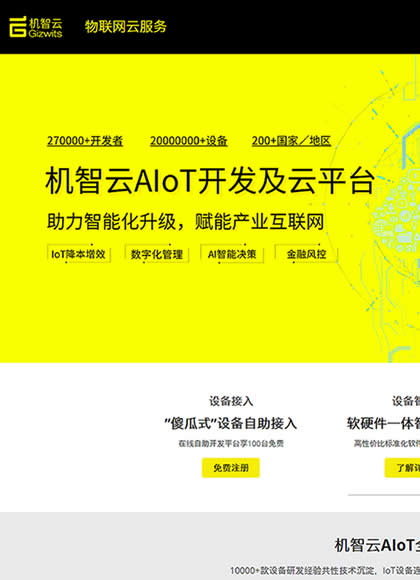 機智云,廣州機智云物聯網科技有限公司旗下品牌。全球領先的物聯網開發和云服務平臺,AIoT全棧(綜合)物聯網平臺服務領導者,國家高新技術企業,新型研發機構。2017年入選廣東省工業互聯網產業生態供給資源池(第一批)工業互聯網云平臺服務商、入選信通院《工業互聯網平臺白皮書》工業互聯網云平臺典型案例,2018年通過工業互聯網云平臺可信評估并獲工業互聯網平臺優秀技術供應商,2018、2019年獲審廣東省工業互聯網應用服務平臺供應商資質